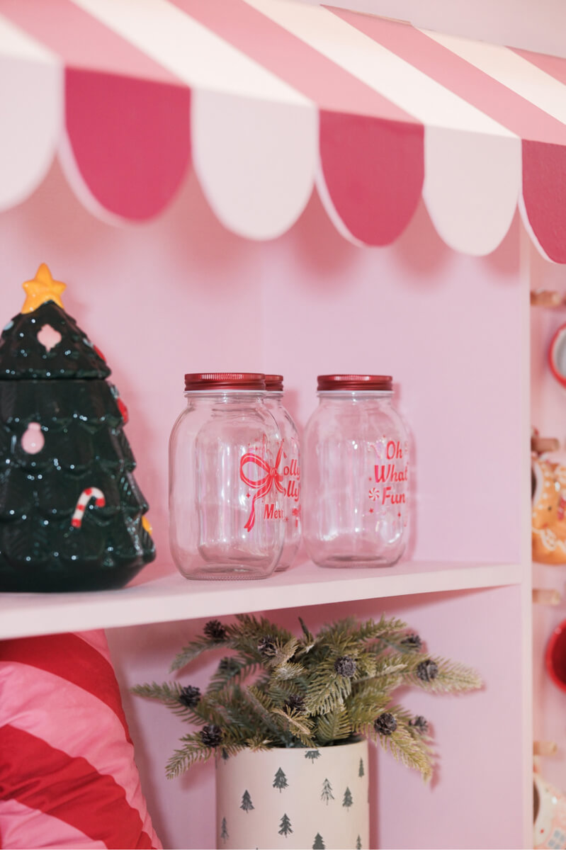 Glassware can serve both functional and decorative purposes. Salazar recommends wine glasses, stemless dessert cups, and holiday-themed tumblers. These pieces can hold drinks, desserts, or small treats, adding elegance and transparency to the setting.