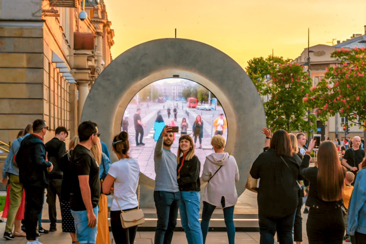 Interest in the Portal concept grew significantly in 2024, when a live connection between New York City and Dublin went viral on social media. The circular screens became digital windows where strangers exchanged waves, smiles, and occasional unexpected moments, drawing global attention to the project. The concept itself was first introduced in 2021, when the inaugural Portal connected Vilnius, Lithuania, and Lublin, Poland. According to Portals Organization, the project reached hundreds of millions of people online within its first few months, driven by public curiosity and social media engagement.