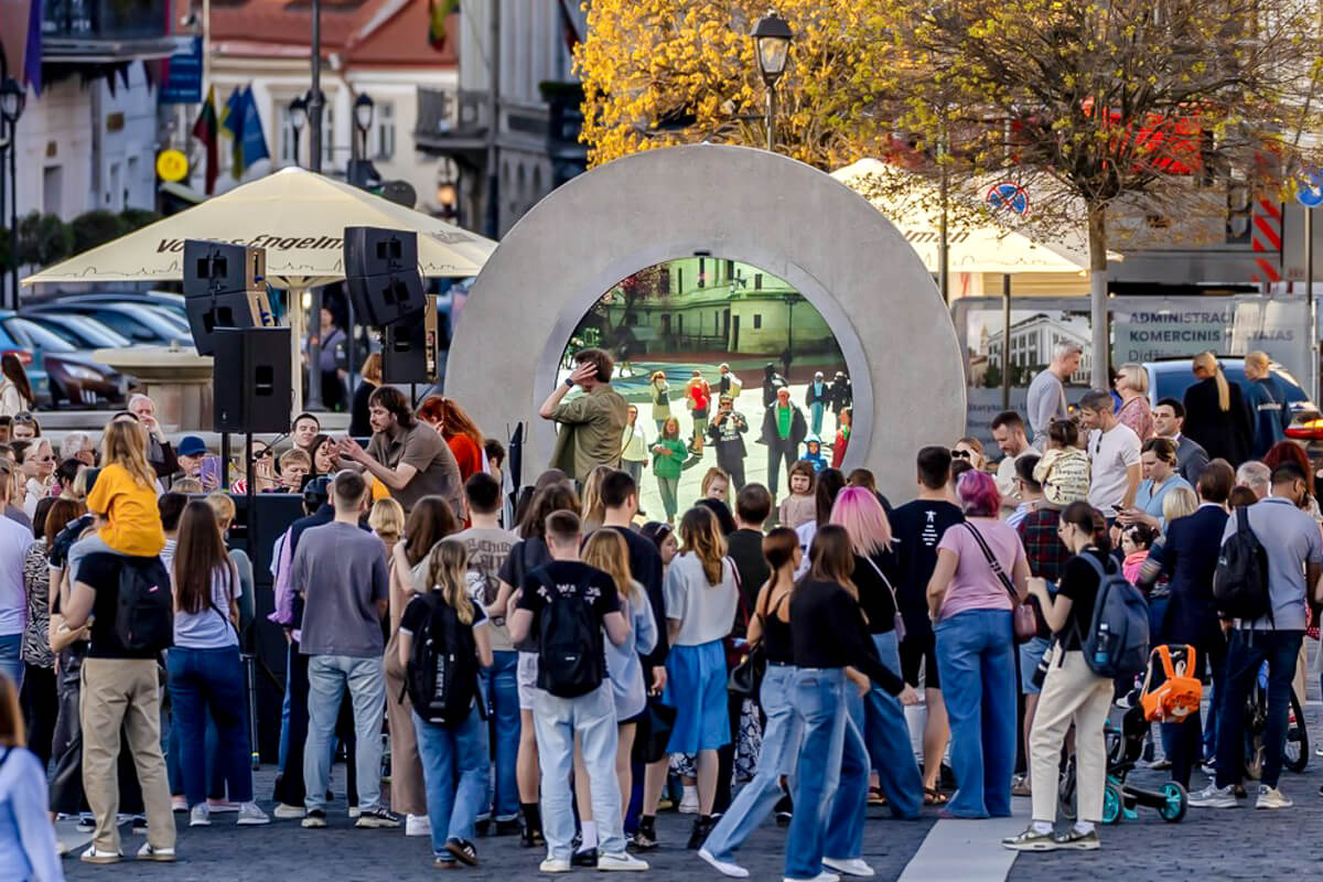 The first Portals opened in May 2021, connecting Vilnius, Lithuania, and Lublin, Poland. The project quickly spread online and in the press, reaching hundreds of millions of people within its initial months of operation. In 2023, Portals Organization UAB was incorporated with offices in Vilnius and Berlin, allowing the team to further develop the next generation of Portal sculptures and expand the project globally.