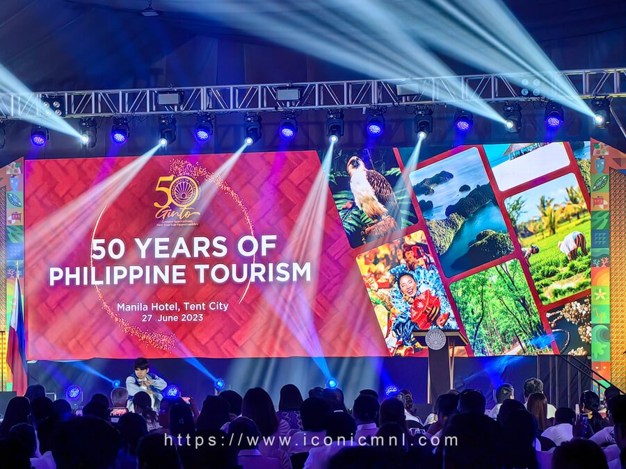 On the celebration of the golden year of the Department of Tourism (DOT), President Ferdinand Marcos, Jr., together with Secretary Christina Garcia Frasco and other officials, led the unveiling of the countryβs enhanced tourism campaign βLove the Philippinesβ as the highlight of the Departmentβs 50th founding year celebration at the iconic Manila Hotel, Tuesday (June 27)