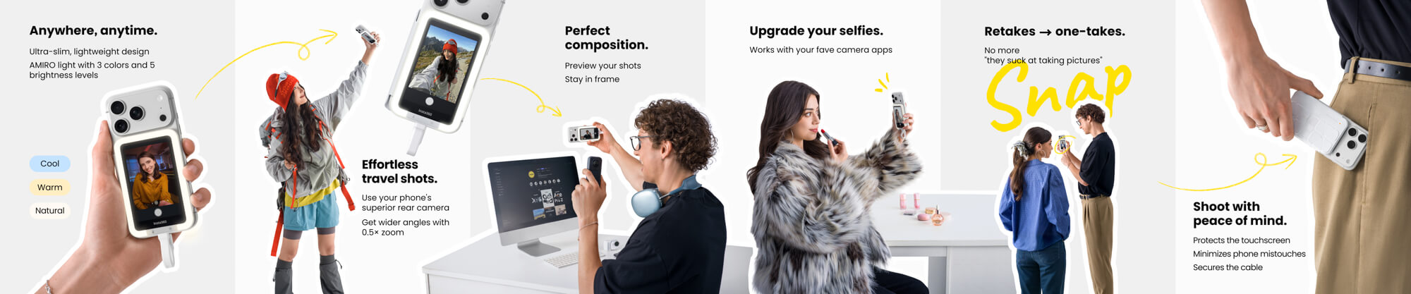 With its compact design and straightforward setup, the Snap Selfie Screen allows creators to capture higher-quality photos and videos using the camera they already carry every day.
