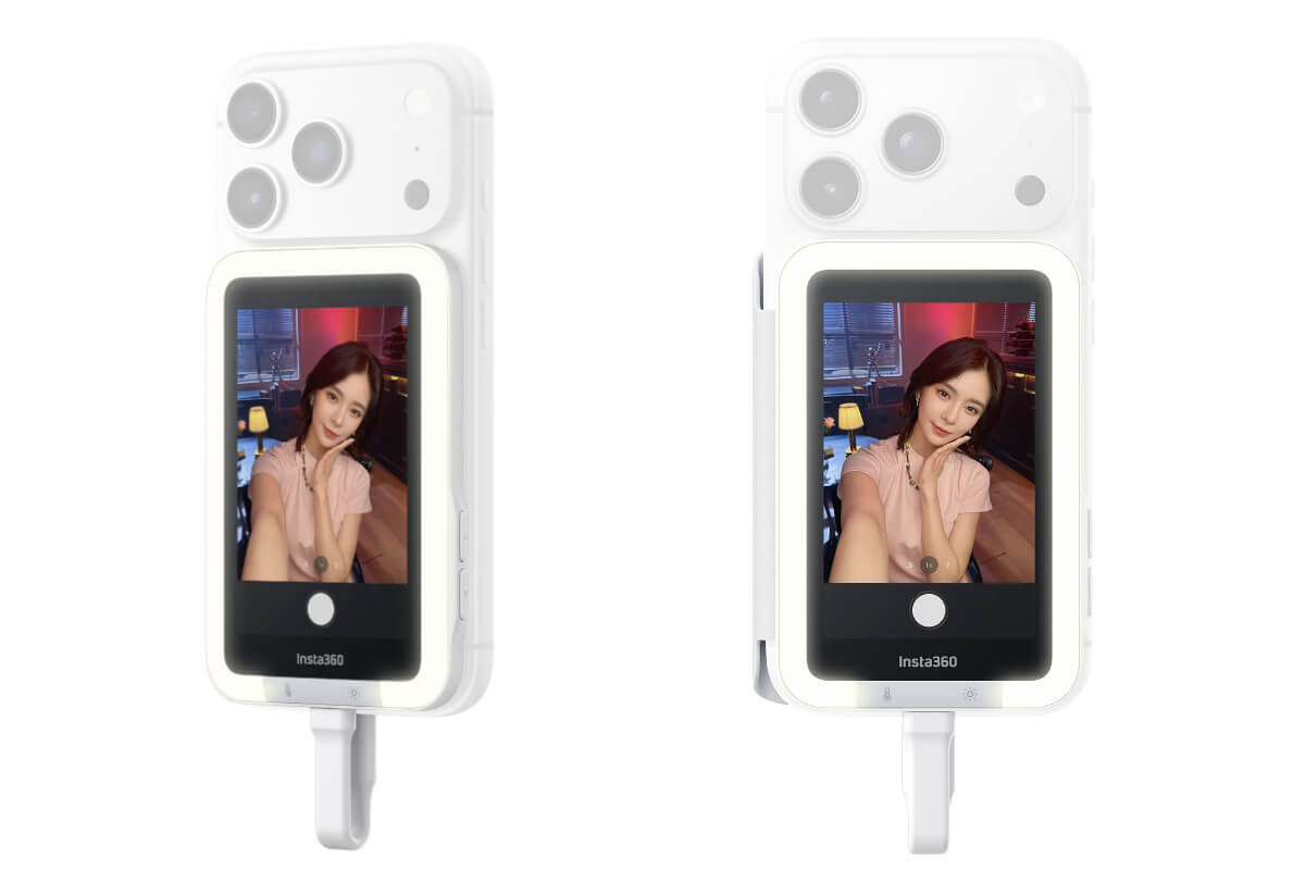 For users who want additional lighting while filming, the Light Edition of the Insta360 Snap Selfie Screen includes a built-in fill light developed with AMIRO.