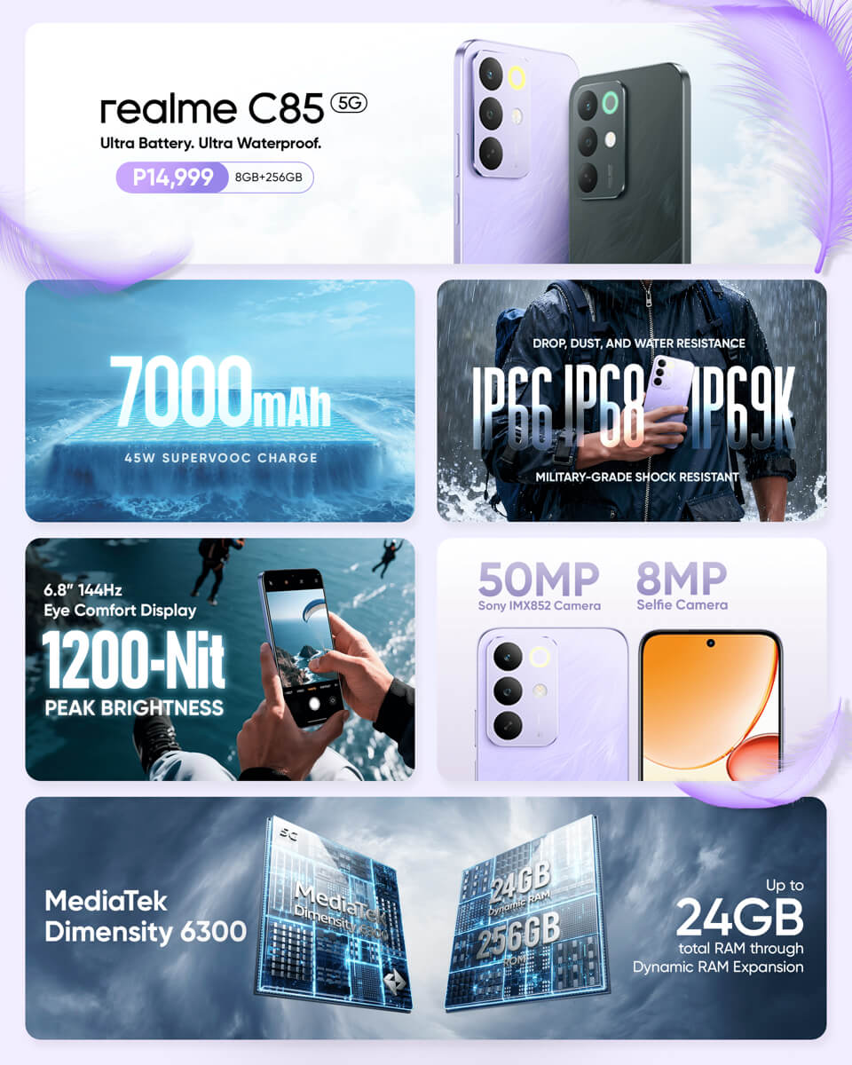 Fans can also look forward to the upcoming availability of the realme C85 4G and the release of the dive test video on realme’s Facebook page. To know more updates about the C85 5G and realme C85 4G, follow realme’s official website and Facebook page.