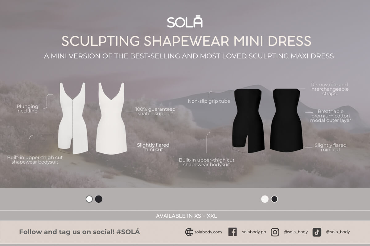 The Sculpting Shapewear Mini Dress will be available for pre-order starting April 9 at sola.com.ph and SOLÁ’s official Shopee store, with a 15% pre-order discount until April 15. From April 16, it will also be available on SOLÁ’s official Lazada and TikTok Shop stores.