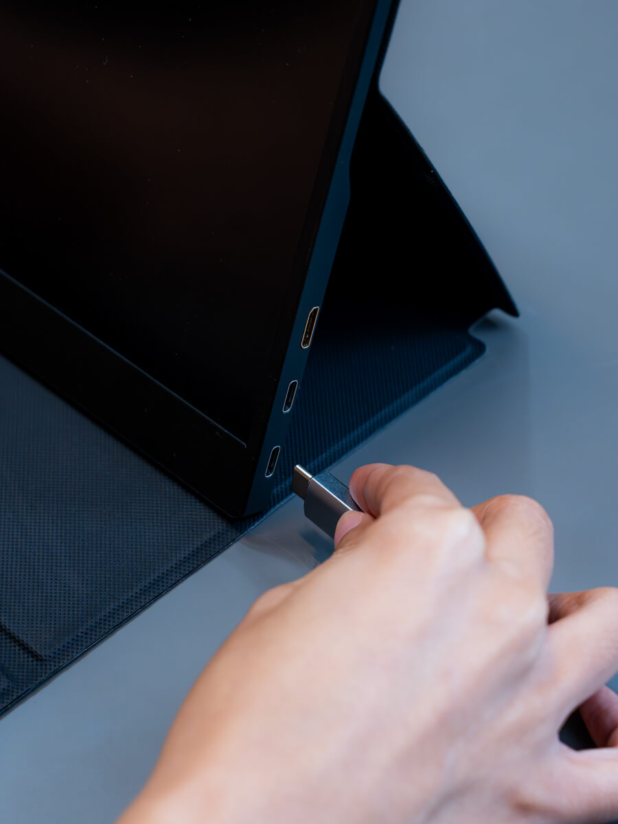 The TechLife Portable Monitor is built with a slim aluminum body measuring 5–9mm in profile. This ultra-slim design supports portability while maintaining a clean and modern aesthetic suitable for both professional and casual environments.