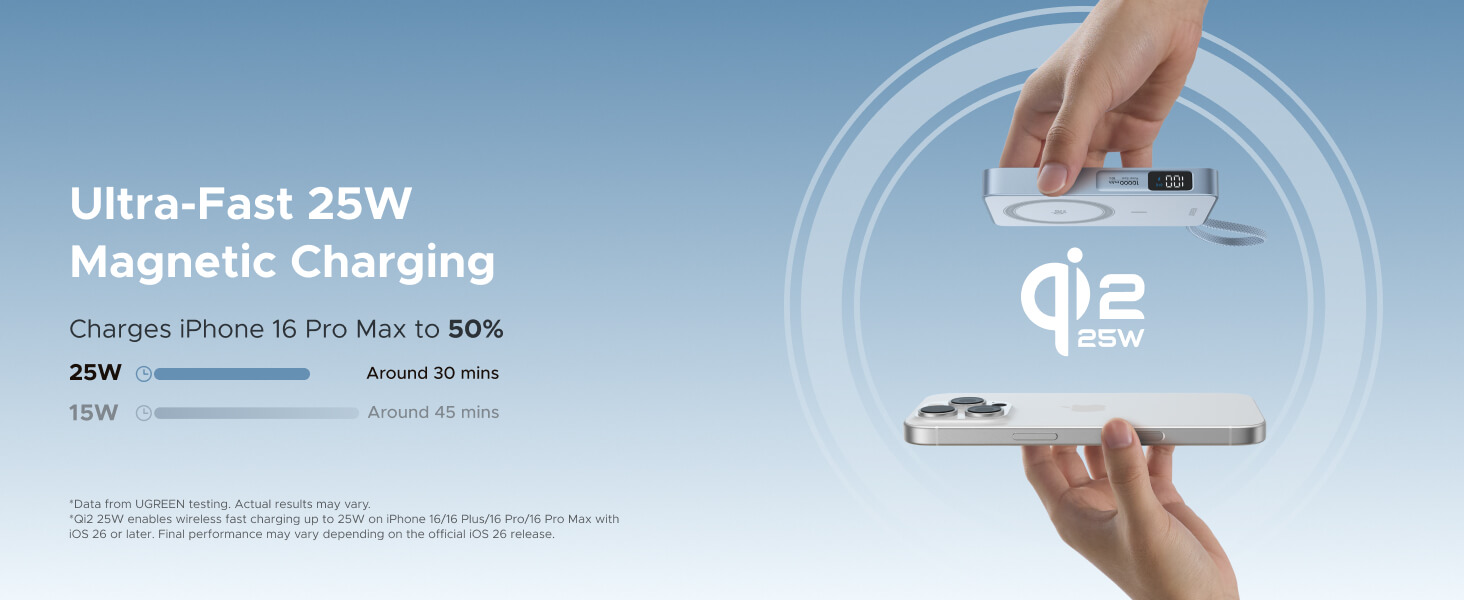 - 25W Qi2 fast charging: Charges iPhone 16 Pro to 50 percent in 30 minutes, fully MagSafe-compatible. Also works with AirPods, Galaxy Buds, Pixel 10 Pro, and other Qi-enabled devices.